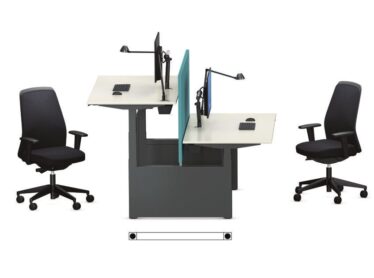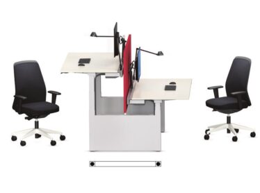 S902-ProRail-2Q Sitz-Steh-Zwillingsarbeitsplatz. Gestell mit Quadratrohr