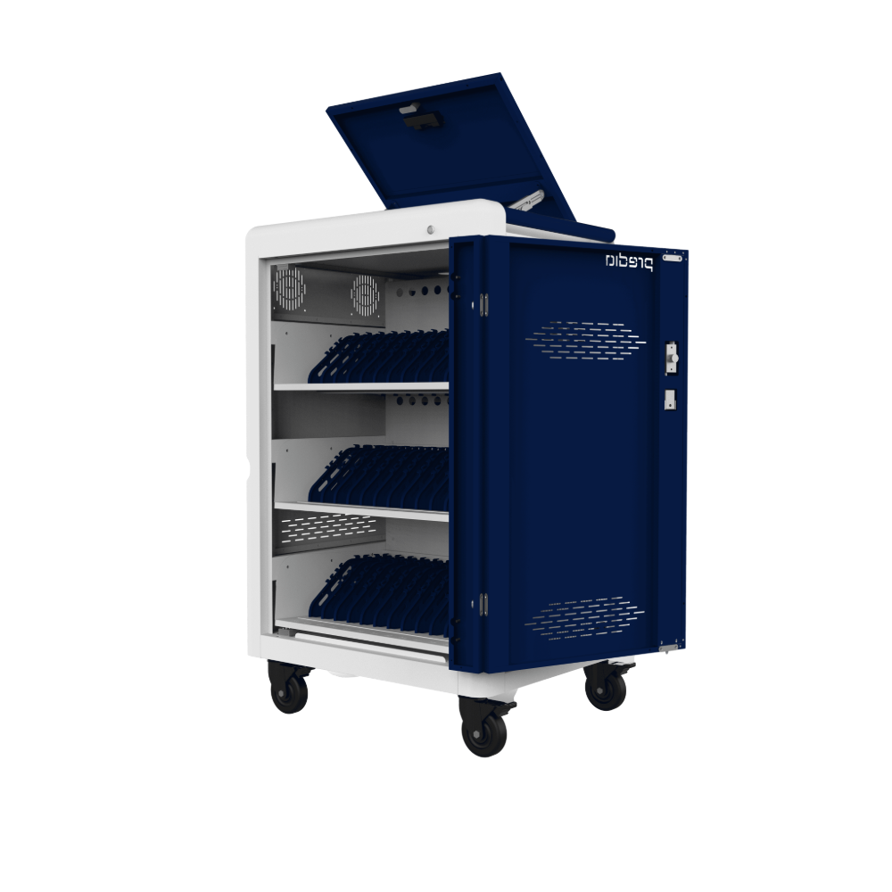 Im Predia Cart können Sie je nach Model 24 oder 36 Geräte bis zu 15 Zoll sicher aufbewahren, aufladen und transportieren. So sind alle Geräte jeden Tag einsatzbereit. Ideal für Unternehmen, in denen z. B. Notebooks, Chromebooks oder Tablets von mehreren Benutzern verwendet werden und dann vor Ort verbleiben.