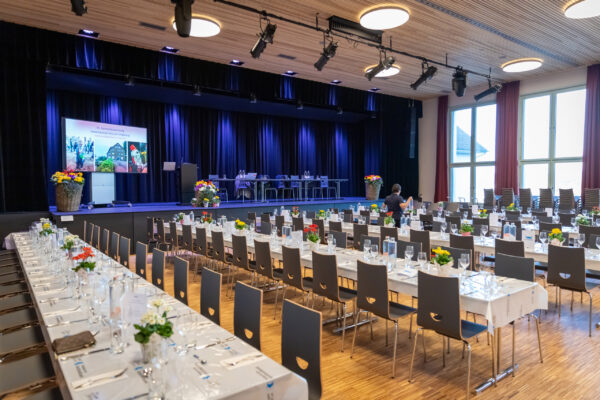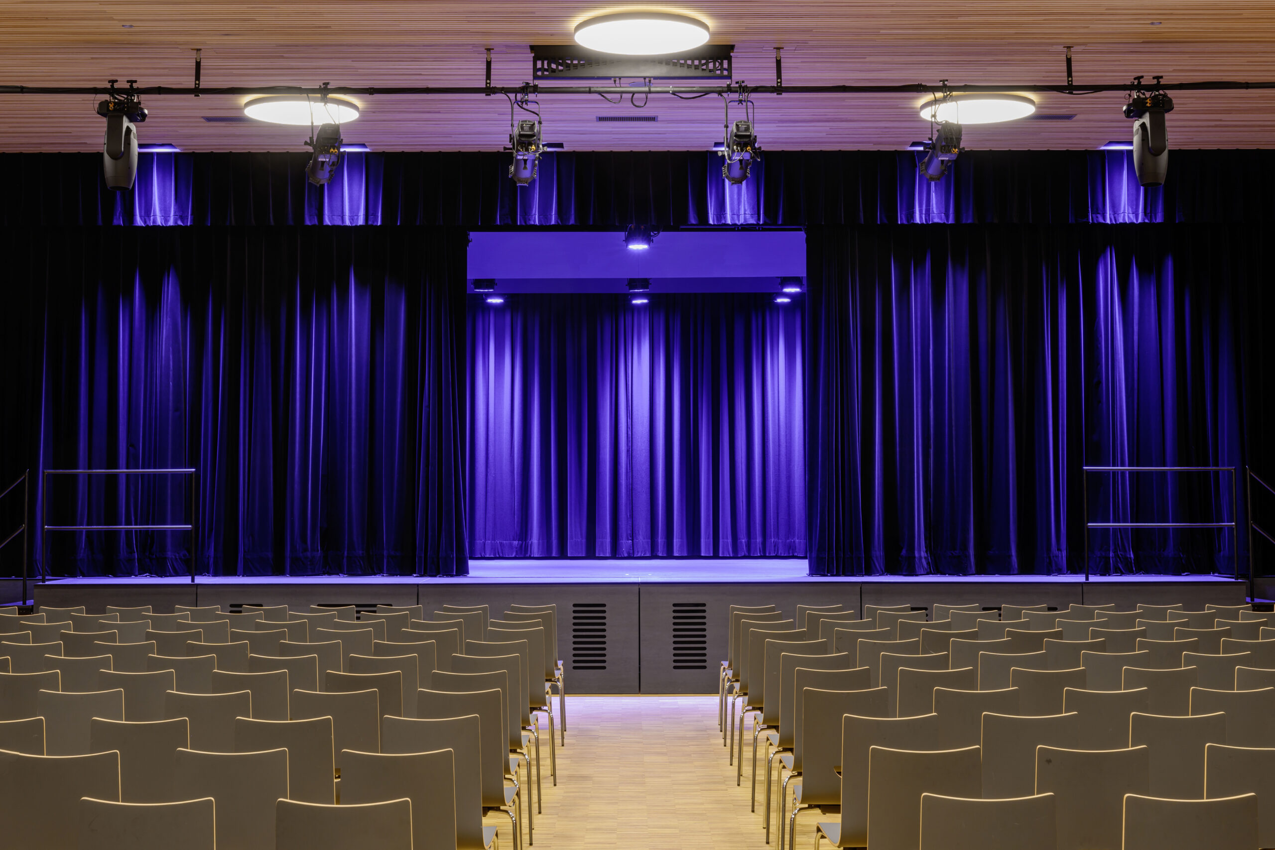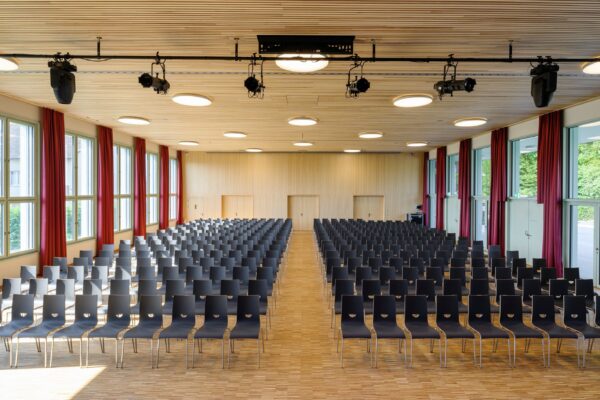 Komplette Möblierung vom Kulturbau mit 440 Stapelstühlen, 75 Klapptischen, Garderoben und Transportmittel. Die repräsentativen Designstühle erfüllen hohe qualitative und funktionale Ansprüche und überzeugen zugleich durch ihre Reihenverbindung, einfache Reinigung, geringen Unterhalt und platzsparende Einlagerung. Die Schalenform und das Griffloch wurden auf das Objekt abgestimmt. Zudem hat man sich für die hochwertige Antifingerprint-Oberfläche bei Stühlen und Tischen entschieden. Das moderne Design mit klaren Linien, filigranen Formen und ausdrucksstarken Farbnuancen verleiht den Möbeln einen minimalistischen Touch und ergänzt das bestehende Raumkonzept.