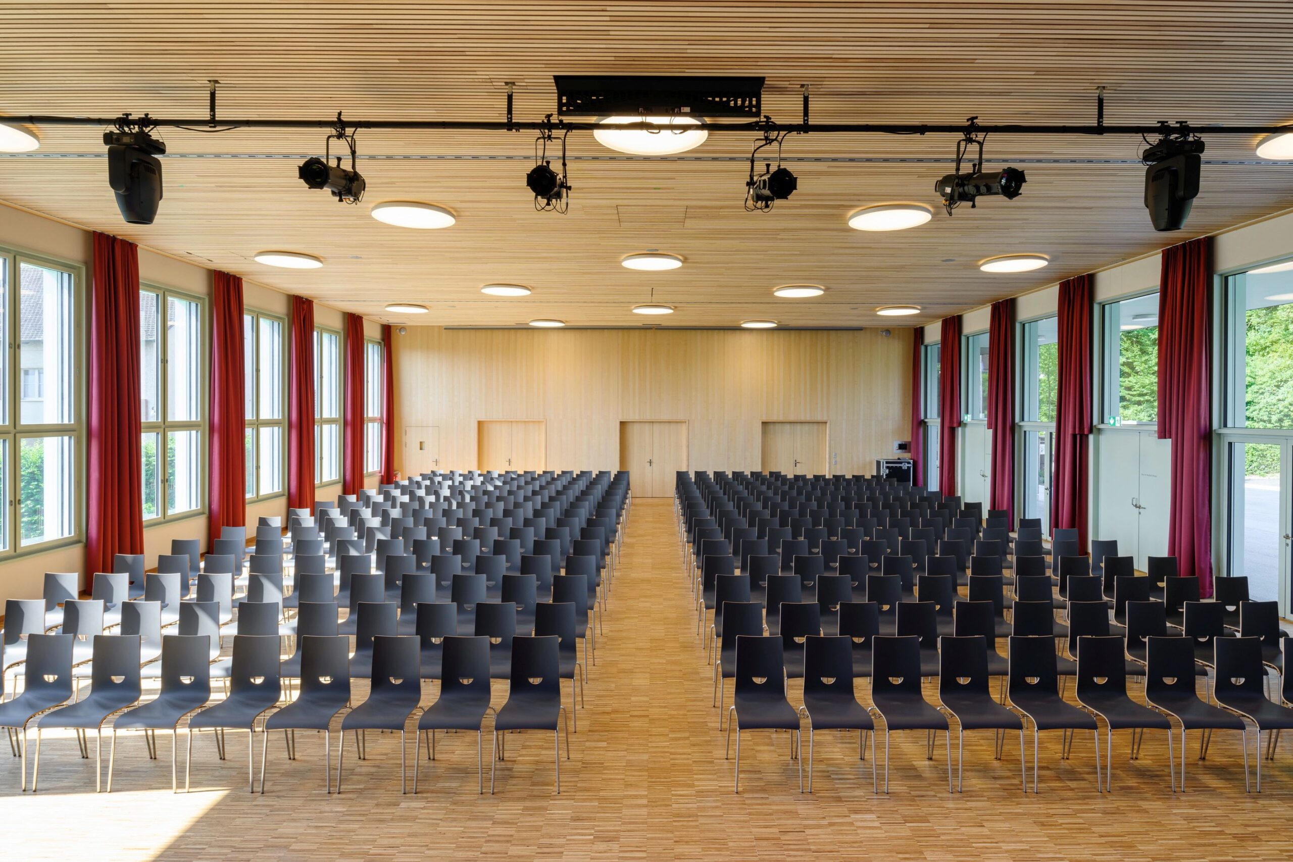 Komplette Möblierung vom Kulturbau mit 440 Stapelstühlen, 75 Klapptischen, Garderoben und Transportmittel. Die repräsentativen Designstühle erfüllen hohe qualitative und funktionale Ansprüche und überzeugen zugleich durch ihre Reihenverbindung, einfache Reinigung, geringen Unterhalt und platzsparende Einlagerung. Die Schalenform und das Griffloch wurden auf das Objekt abgestimmt. Zudem hat man sich für die hochwertige Antifingerprint-Oberfläche bei Stühlen und Tischen entschieden. Das moderne Design mit klaren Linien, filigranen Formen und ausdrucksstarken Farbnuancen verleiht den Möbeln einen minimalistischen Touch und ergänzt das bestehende Raumkonzept.